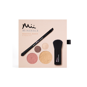 Why Mii? - Onze Mineral Beautiful Basics Kit is de ultieme Mii make-up kit. 4 minerale producten op basis van onze bestsellers & 2 cruelty-free kwasten. Mineral Irresistible Face Base (foundation): Zachte, lichte formule die makkelijk blend voor een sublieme...